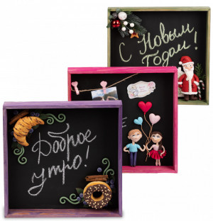 Предлагаем вам чудесный арт-конструктор! Наш мастер поделится с вами сразу тремя вариантами дизайна доски: «Мечта сладкоежки», «История любви» и «Новогоднее послание». Вы узнаете обо всех нюансах процесса – от разработки композиции до секретов лепки. Пользуясь этими подсказками и подробной видеозаписью, вы сможете сами создать одну или сразу три «Доски идей».